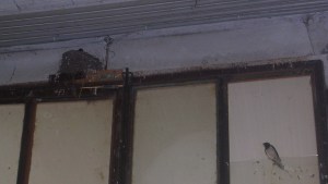 Per favorire il passaggio con l’esterno (i nidi sono all’interno della struttura) Sebastiano ha tagliato un vetro operazione molto apprezzata dai 20 genitori che a ritmo forsennato portano il cibo (insetti) ai nidiacei.