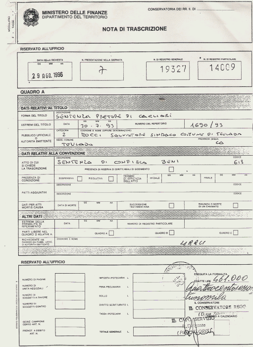 nota trascrizione confisca Baia delle Ginestre bis, 1996