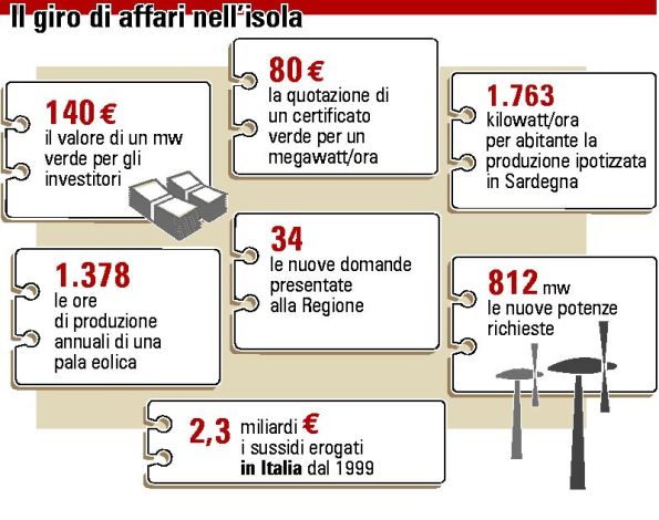 Più chiaro di così! Questi signori pensano che anche il surplus di energia prodotta dalle centrali eoliche (non chiamateli “parchi” per cortesia anche per rispetto ai parchi mai fatti in Sardegna), come tante anche altre cose, si possa “buttare” tranquillamente in mare tanto non si vede! Nel frattempo la Sardegna e i Sardi sono riusciti a scambiare paesaggio (quello che un tempo era considerato unico nel Mediterraneo e veniva utilizzato per pubblicizzare film e viaggi non Sardi) con ambiente (quello ricco di tutta la CO2 prodotta in Padania). Davvero un affare…!