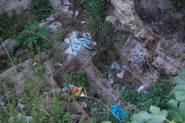 Tombe romane ad arcosolio e scavate nella roccia, resti della necropoli che occupava buona parte del Colle. Meriterebbe almeno un piccolo pannello illustrativo per raccontarne la storia. Invece è piena di rifiuti. Buste e bottiglie di plastica, giornali, stracci, vetro. Frutto del misterioso motivo che spinge bestie a due zampe, giacca, cravatta, jeans, gonna o che altro a gettare i rifiuti su un pezzo di identità di Cagliari piuttosto che in un cestino, pur semi-rotto ma contiguo.
