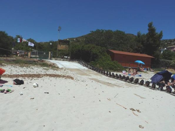Torre delle Stelle, spiaggia di Genn'e Mari, scivolo in cemento parzialmente rimosso e struttura in legno amovibile (19 giugno 2011)