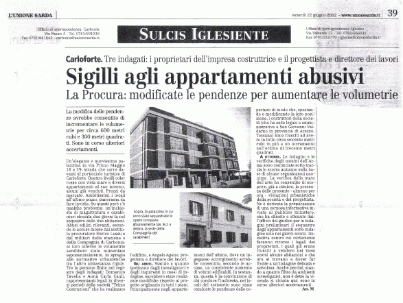 Home > Condanna penale per abusi edilizi a Carloforte. > da L’Unione Sarda, 22 giugno 2012