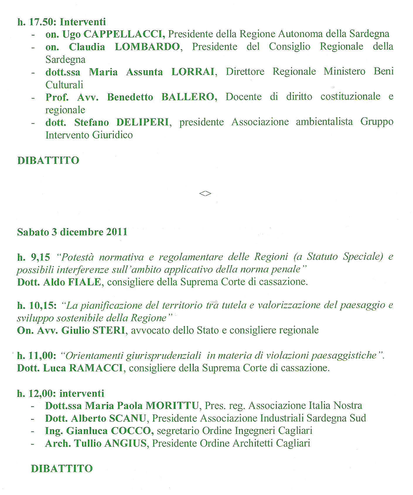 “Finestre sul Paesaggio”. Convegno. Cagliari, 2-3 dicembre 2011