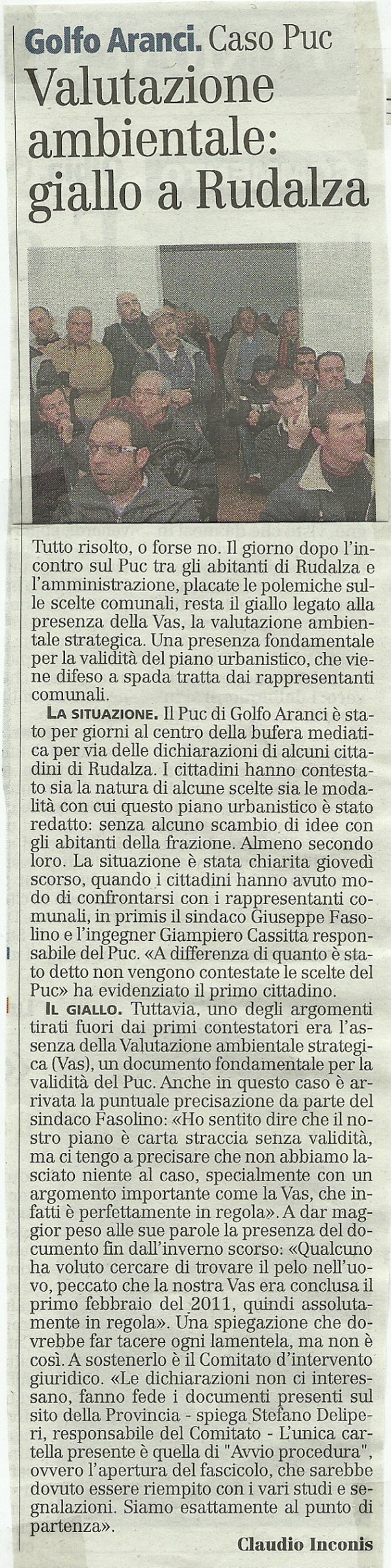 ecco qui la pubblicazione dell’avviso (contenente i riferimenti alla V.A.S.) sul sito web della Provincia di Olbia-Tempio in data 3 febbraio 2012, un mese e mezzo dopo la pubblicazione dell’avviso sul quotidiano regionale (18 dicembre 2012), quasi due mesi e mezzo dopo la deliberazione consiliare di adozione del P.U.C. (24 novembre 2012), il giorno della notizia del ricorso (annunciato da settimane): http://nuke.provincia.olbiatempio.it/AMBIENTE/5CEducazionesostenibilit%C3%A0impattoambientale/tabid/339/Default.aspx