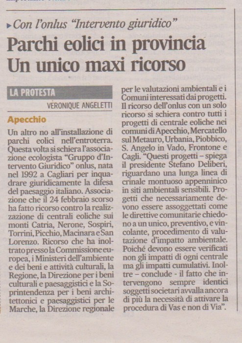Home > Appennino Umbro-Marchigiano, crinali di pale eoliche? > da Il Corriere Adriatico, 1 marzo 2012