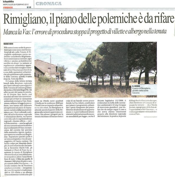 Rimigliano un errore ferma il piano della discordia (http://ricerca.repubblica.it/repubblica/archivio/repubblica/2012/02/29/rimigliano-il-piano-delle-polemiche-da-rifare.html)