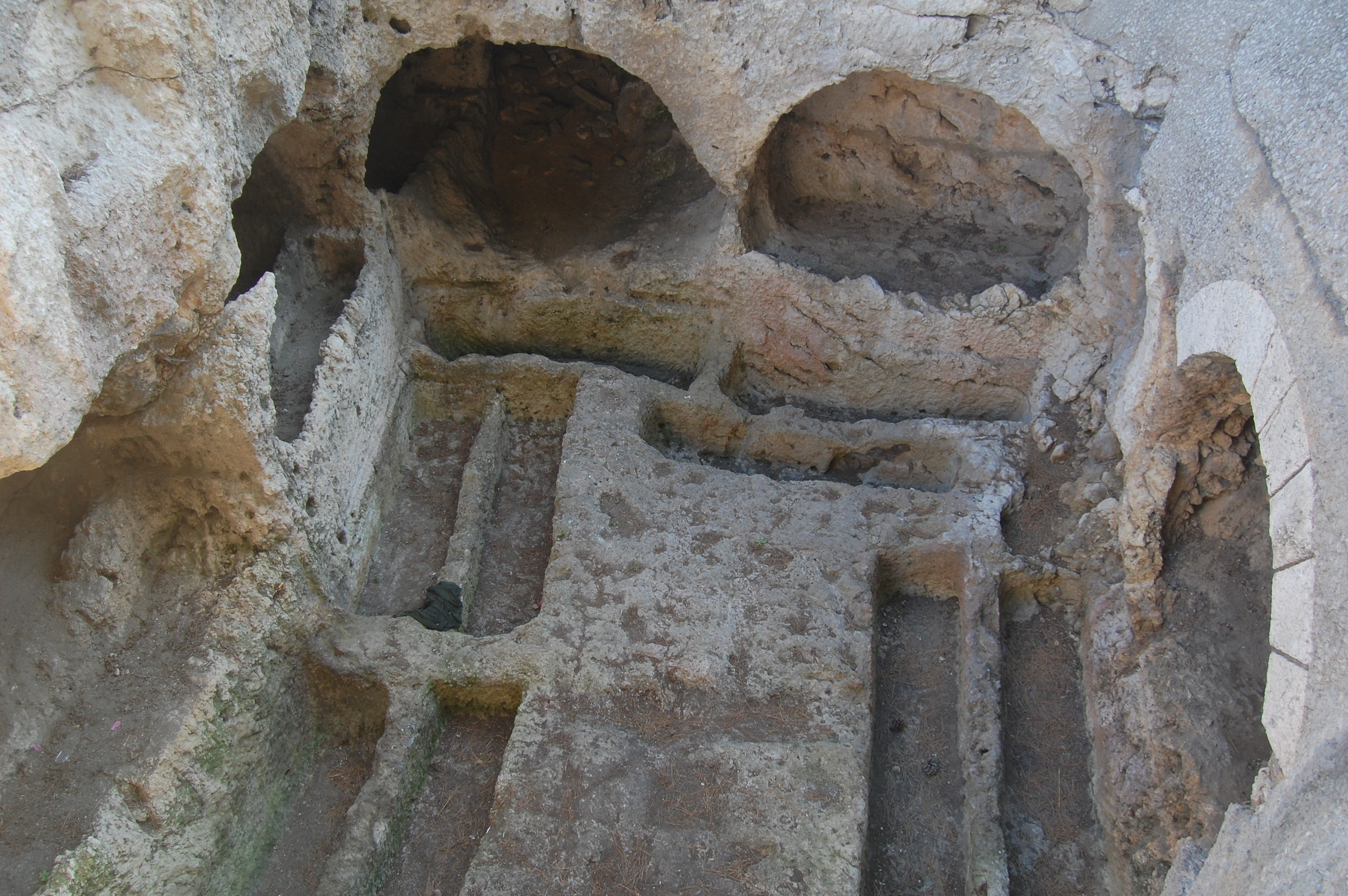 Tombe romane ad arcosolio e scavate nella roccia, resti della necropoli che occupava buona parte del Colle.  Meriterebbe almeno un piccolo pannello illustrativo per raccontarne la storia.