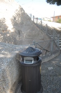 Cagliari, Bonaria, contenitore porta-rifiuti contiguo alla “nicchia” archeologica