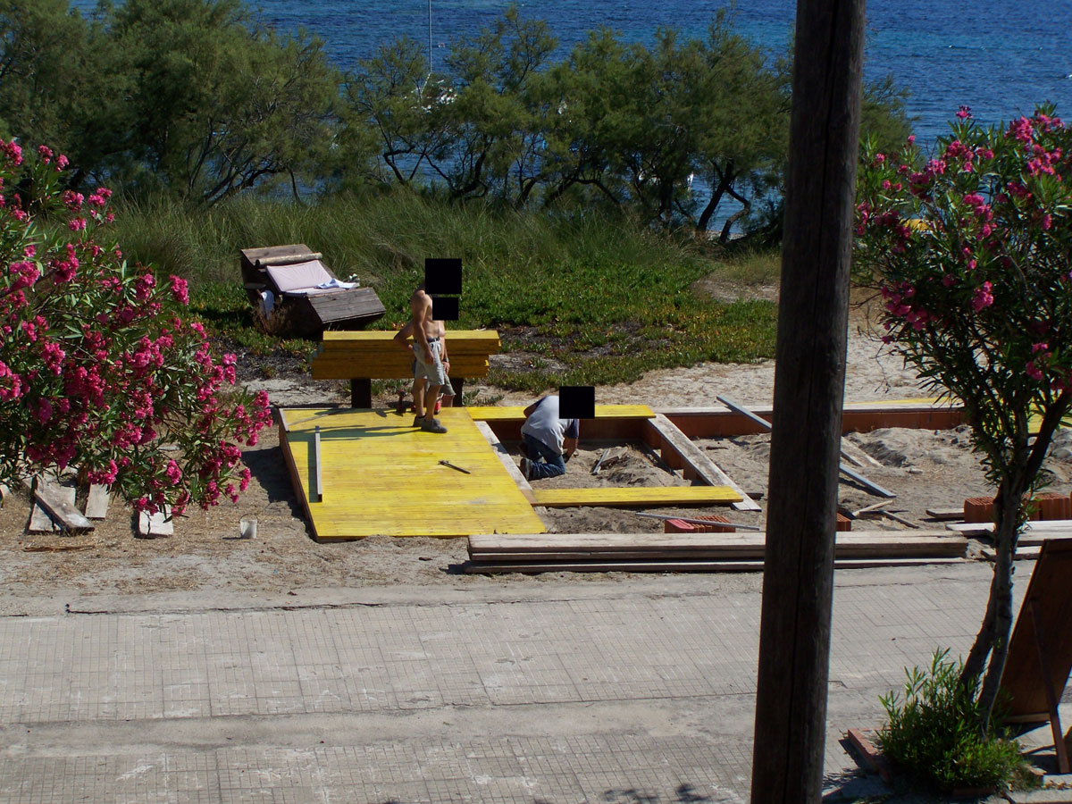 Prima di collocare la struttura si è provveduto decespugliare l’intera area, tagliando le numerose piante grasse spontanee e diversi esemplari di Pancratium maritimum (Giglio marino), che hanno la funzione di arginare l’erosione della spiaggia.