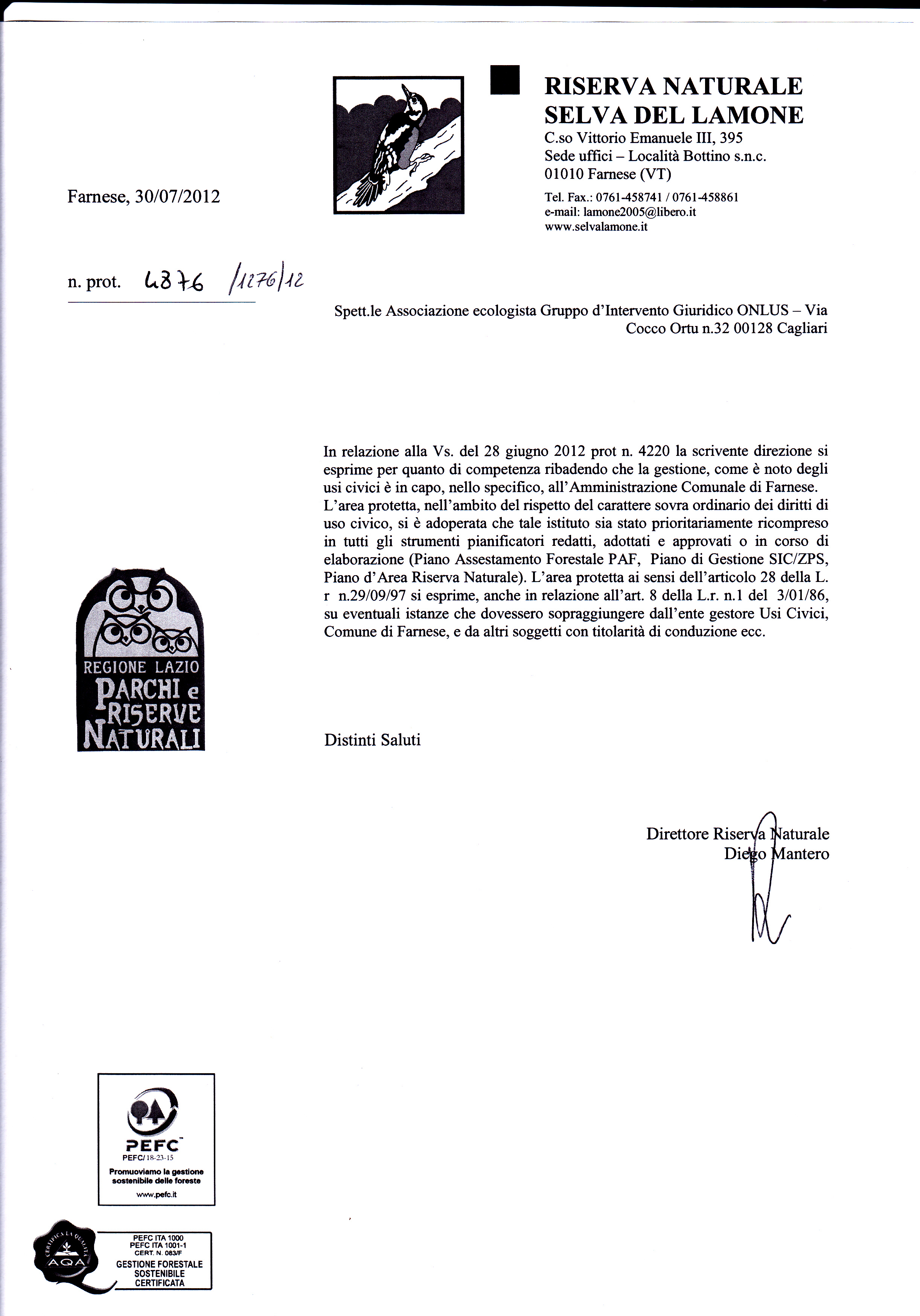 L’associazione ecologista Gruppo d’Intervento Giuridico onlus – su segnalazione di residenti – ha inoltrato (21 giugno 2012) una specifica richiesta di informazioni a carattere ambientale e adozione degli opportuni provvedimenti riguardo una serie di conciliazioni amministrative adottate (marzo – settembre 2011)[1] dalla Giunta comunale di Farnese per l’attribuzione di terre in proprietà privata a occupatori senza titolo di porzioni di demanio civico, nonostante l’espresso avviso contrario della Direzione Agricoltura – Area diritti collettivi della Regione Lazio (nota n. 387796 del 28 luglio 2011).