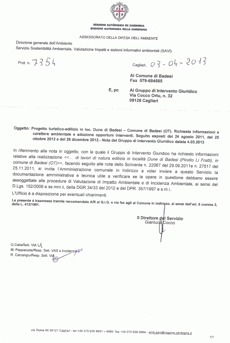 nota Servizio SAVI su Baia delle Mimose, aprile 2013