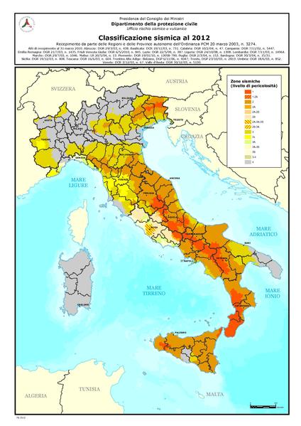 Presidenza Consiglio Ministri, Dipartimento protezione civile, rischio sismico in Italia (2012)