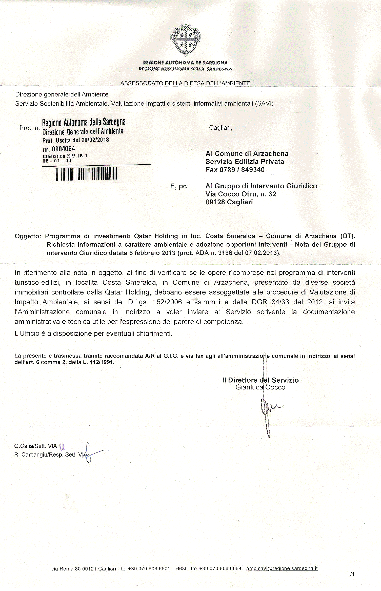 L’aveva preannunciato la nota del Comune di Arzachena – S.U.A.P. prot. n. 23144 del 25 giugno 2013, con la quale vien detto al Servizio valutazione impatti (S.A.V.I.) della Regione autonoma della Sardegna che “agli atti … non risulta presentato alcun programma di investimenti turistico-edilizi da Soc. immobiliari facenti capo alla Qatar Holding”, ma solo “singole richieste di ampliamento di fabbricati ‘rurali’ ubicati fuori dal centro urbano (e/o frazioni) ai sensi della L.R. n. 4/2009 (Piano Casa)”.