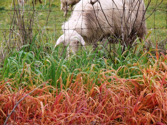 Home > Ancora diserbo chimico, ancora inutili rischi. > Pecora che bruca l’erba in prossimità di una cunetta stradale diserbata