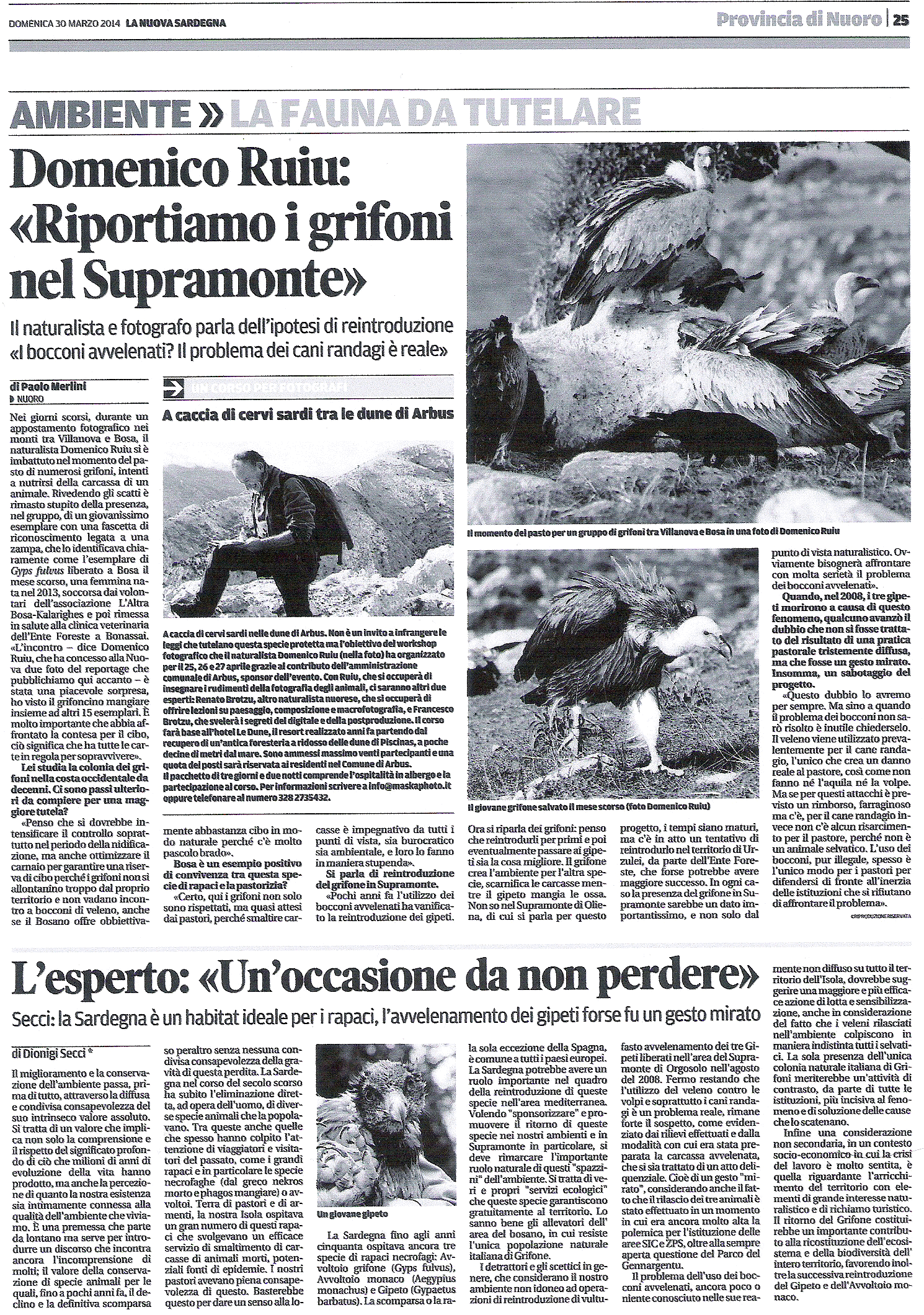 Bel servizio giornalistico di Paolo Merlini per La Nuova Sardegna sul nostro Grifone, in occasione della recente liberazione di un giovane esemplare raccolto dai volontari dell’associazione Kalarighes e curato dalle strutture dell’Ente foreste della Sardegna.