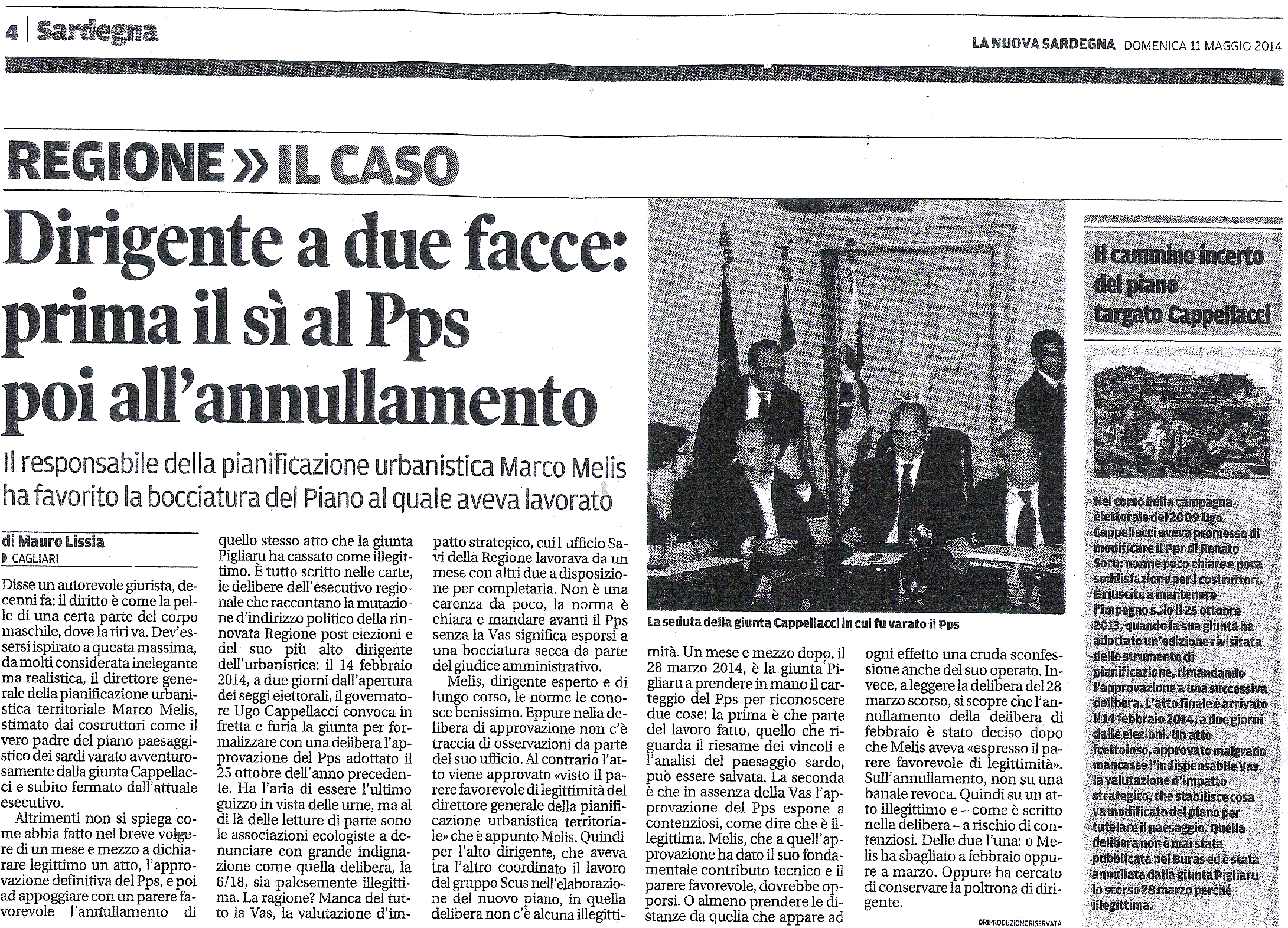 anche su Il Manifesto Sardo (“La pianificazione paesaggistica di Pigliaru“), n. 168, 1 maggio 2014