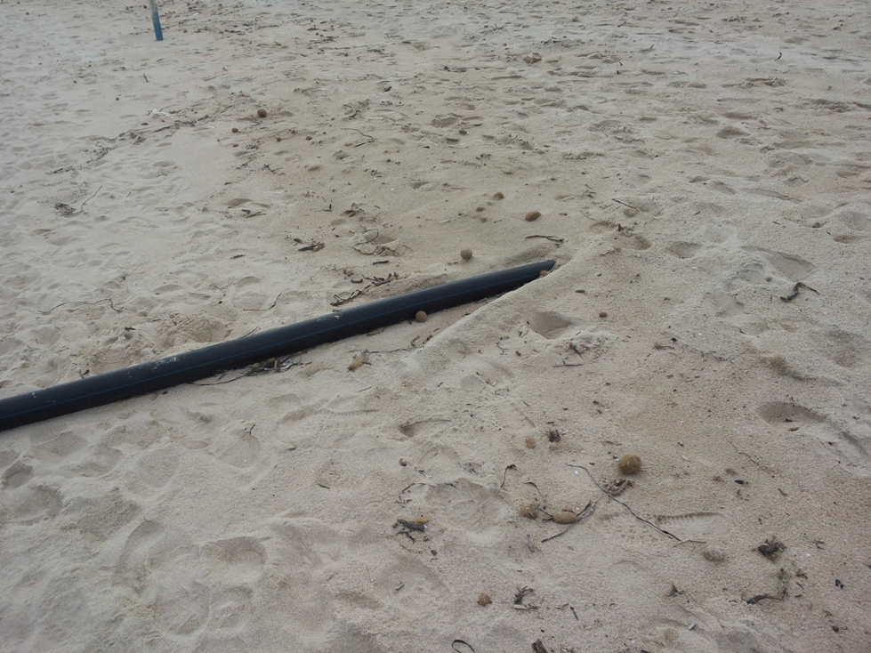 La seconda : ma e’ normale che per tutta la stagione estiva , sull’arenile ci sia la presenza di questo tubo ( in versilia mai visto una cosa del genere ).