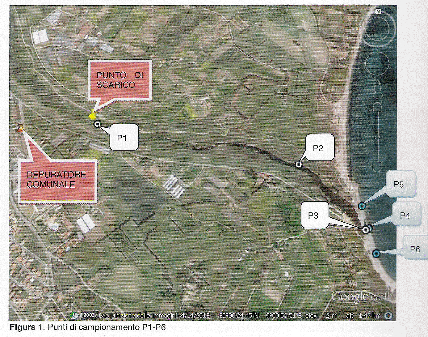 Piuttosto “pesanti” le conclusioni della campagna di monitoraggio dell’A.R.P.A.S. (1-2 settembre 2014): “gli accertamenti eseguiti hanno evidenziato che il punto P1 (posto a circa 40 m. a valle dello scarico del depuratore presenta indici di inquinamento microbico di elevatissima entità (Escherichia colii 2.000.000 ufc/250 ml; Coliformi totali 3.000.000 ufc/100 ml; Enterococchi 2.500.000 ufc/100 ml, n.d.r.) e concentrazione di azoto ammoniacale (16,12 mg/l. n.d.r.) superiore al valore limite di emissione per gli scarichi in acque superficiali indicato nella tab. 3 dell’allegato 5 alla parte terza del D. Lgs. 152/06”.