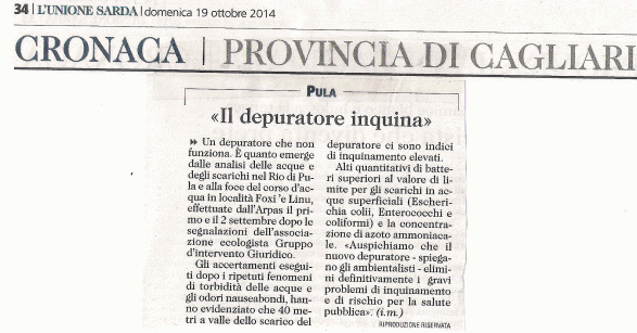 Home > Il depuratore di Pula inquina e non depura. > L’Unione Sarda, 19 ottobre 2014