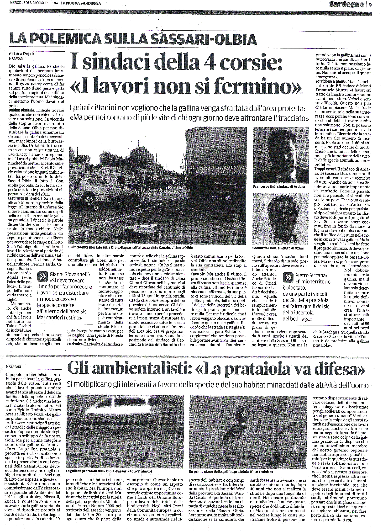 Comuni e Regione non hanno mai dato l’ok al piano di gestione dell’area protetta per le specie animali e sono imprigionati nelle stesse norme che bloccano i lavori sulla strada a quattro corsie Sassari-Olbia. (Luca Rojch): http://lanuovasardegna.gelocal.it/sassari/cronaca/2014/12/04/news/il-sic-e-rimasto-a-meta-la-gallina-puo-attendere-1.10428404