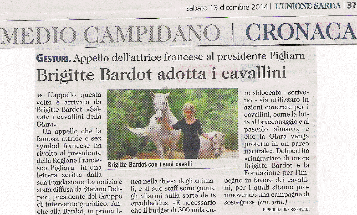 Fondazione scrive a governatore Pigliaru, “salvateli”: http://www.ansa.it/sardegna/notizie/2014/12/12/brigitte-bardot-a-difesa-cavallini-sardi_326b07f0-fd8d-4fee-bed9-90dd5c3ec970.html