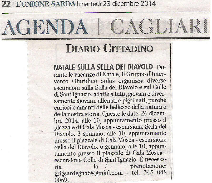 Se la corsa al regalo giusto vi stanca, se i pranzi delle feste vi fanno assopire, se volete scacciare la malinconia, se volete condividere la gioia, se avete voglia di fare una passeggiata tra natura e storia, tra gli odori della macchia e le leggende cagliaritane, venite con noi!