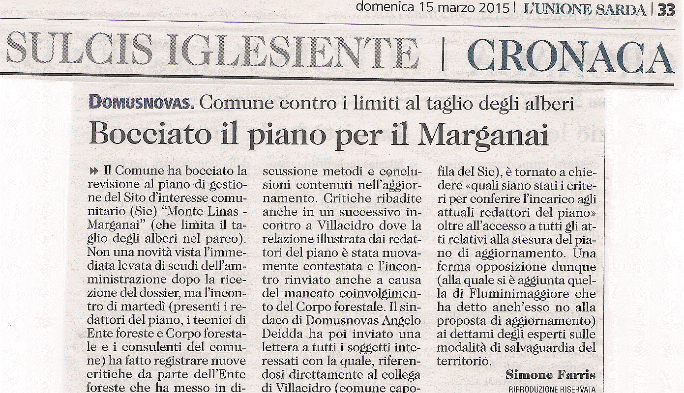 In più: la Foresta Demaniale Marganai non è di proprietà di un Comune ma della Regione Autonoma della Sardegna che l’ha acquistata con ingente esborso di denaro pubblico nel 1979 che proprio per questo non può essere utilizzata per ritrarre alcun tornaconto economico. Per questo non è un caso che la gestione sia stata affidata ad un ente regionale non economico che non può avere profitto e tornaconto economico come missione.