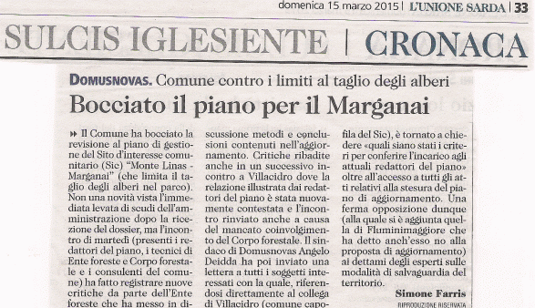 L’Unione Sarda, 15 marzo 2015, Marganai