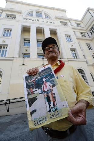 Uno dei criminali organizzati (per dirla con le parole dell’empatico De Gennaro) che vennero massacrati nella Scuola “Diaz” – il vicentino Arnaldo Cestaro, allora sessantaduenne, oggi settantacinquenne, un braccio, una gamba, dieci costole rotti ematomi in testa, lividi dappertutto – ha cocciutamente ricercato un po’ di giustizia.
