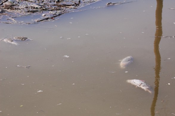 parco naturale regionale “Molentargius-Saline”, Rollone, canale, pesci morto (12 aprile 2015)