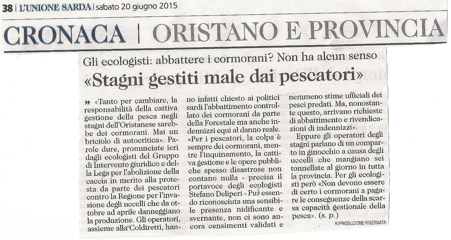 “Cormorani, capri espiatori della cattiva gestione degli stagni oristanesi”: http://www.linkoristano.it/prima-categoria/2015/06/19/cormorani-comodi-capri-espiatori-della-cattiva-gestione-degli-stagni-oristanesi/