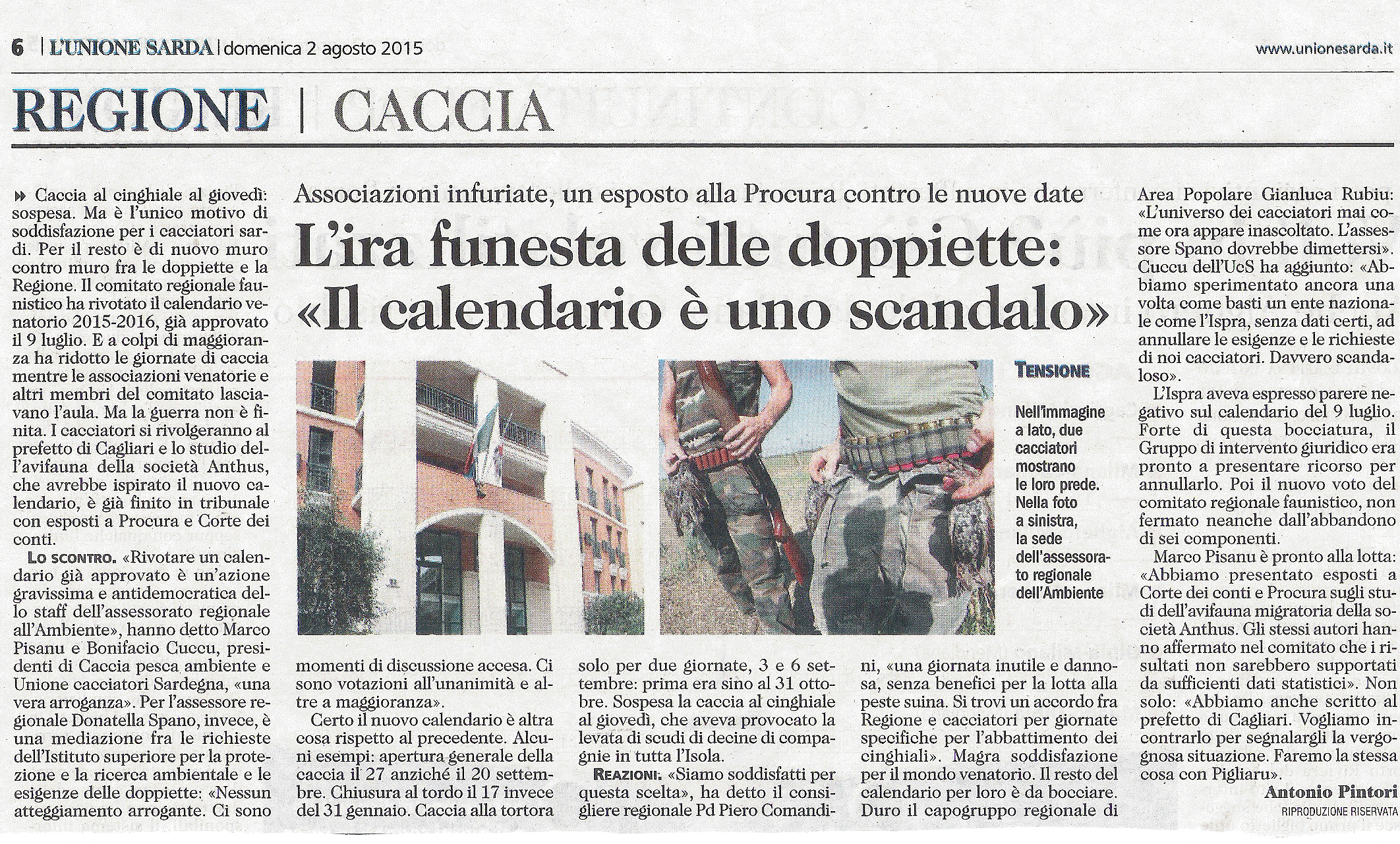 La protesta oggi a Cagliari. Caccia di giovedì? Doppiette sarde sul piede di guerra: http://www.regione.sardegna.it/rassegnastampa/1_146_20150730084057.pdf