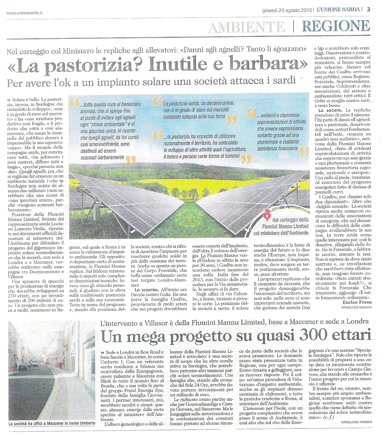 Tre domande sull’impianto proposto tra Decimoputzu e Villasor. (Cristina Cossu): http://www.regione.sardegna.it/rassegnastampa/1_231_20150827083411.pdf