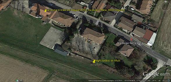 Veggiano, rogo di rifiuti (agosto 2015), individuazione sito (da Google Earth).Maria di Veggiano (PD)_25 ago 2015