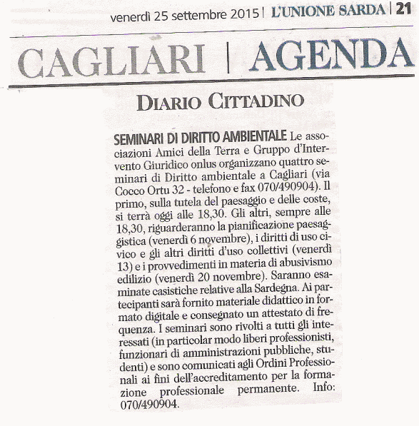 L’Unione Sarda, 25 settembre 2015, seminari