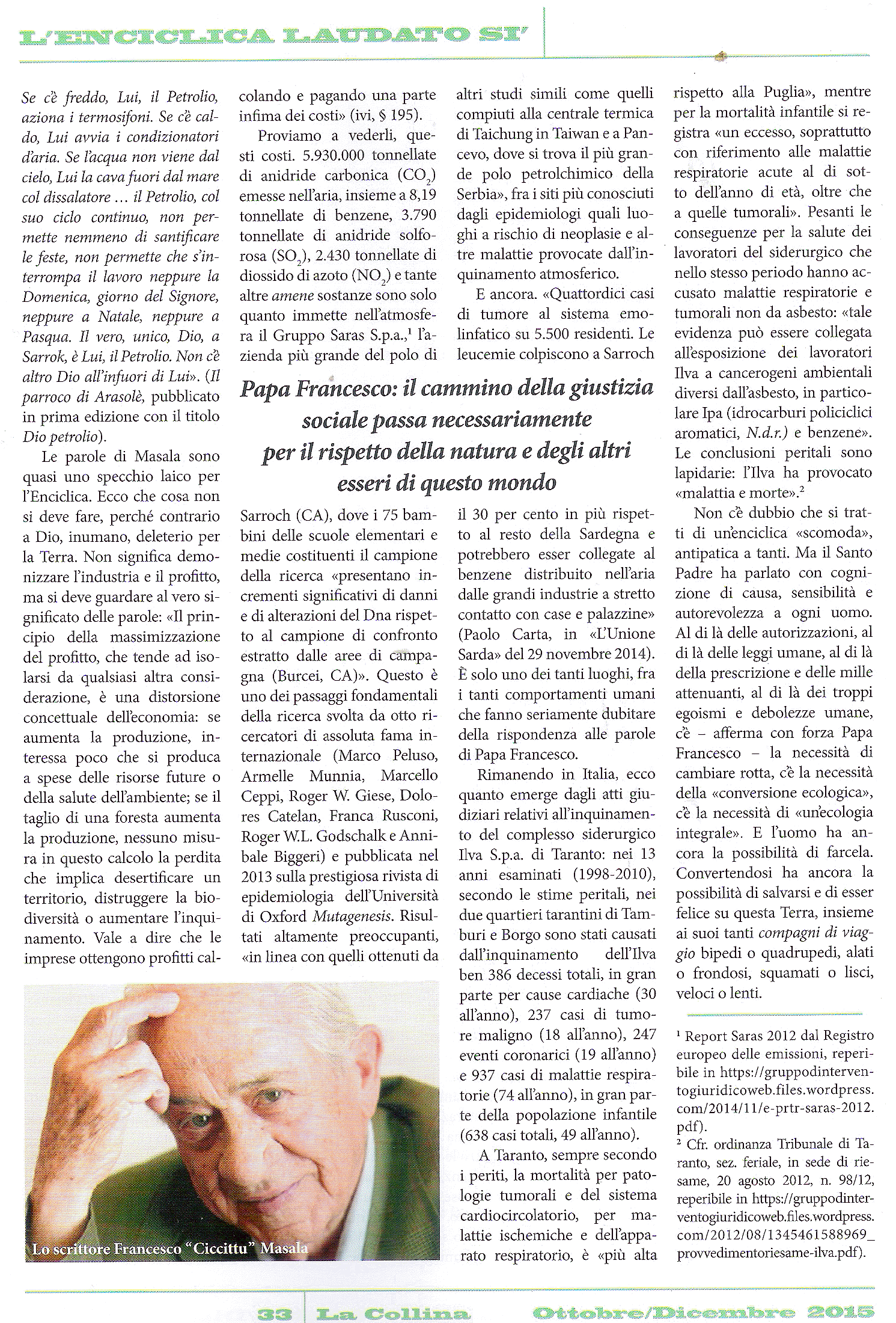 Salvarsi nella Terra dei veleni, su La Collina, ottobre-dicembre 2015.