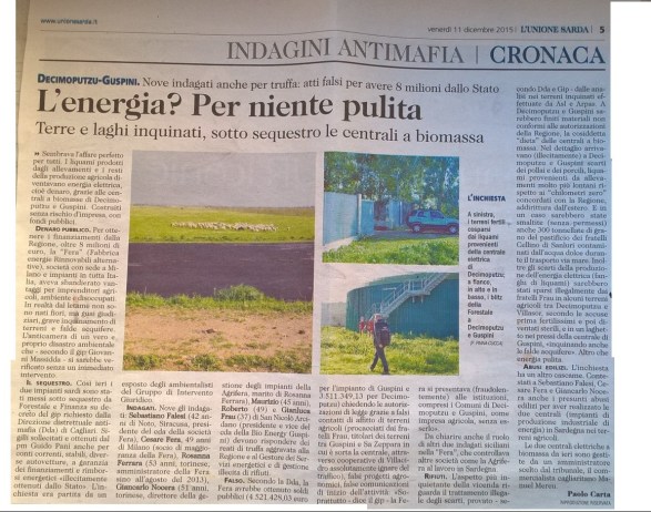 L’Unione Sarda, 11 dicembre 2015