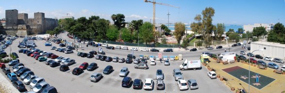 Bari, panoramica del cantiere edilizio. Notare la distanza dal Castello normanno-svevo