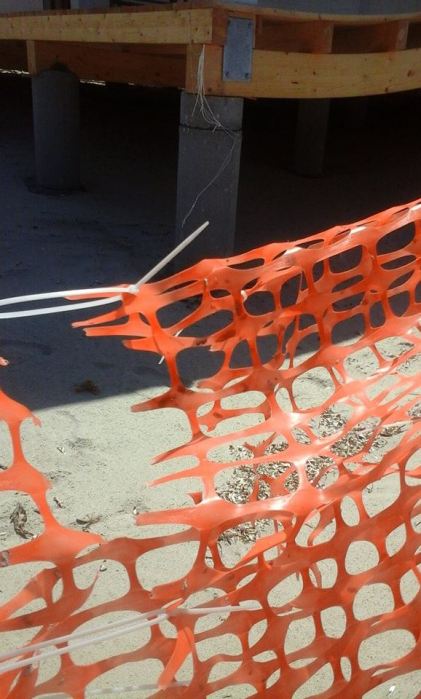 Trinità d’Agultu, spiaggia di Li Feruli, chiosco in corso di realizzazione, piloncini in cemento