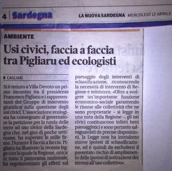 - l'offensiva istituzionale contro i demani civici della Sardegna e la risposta ecologista.