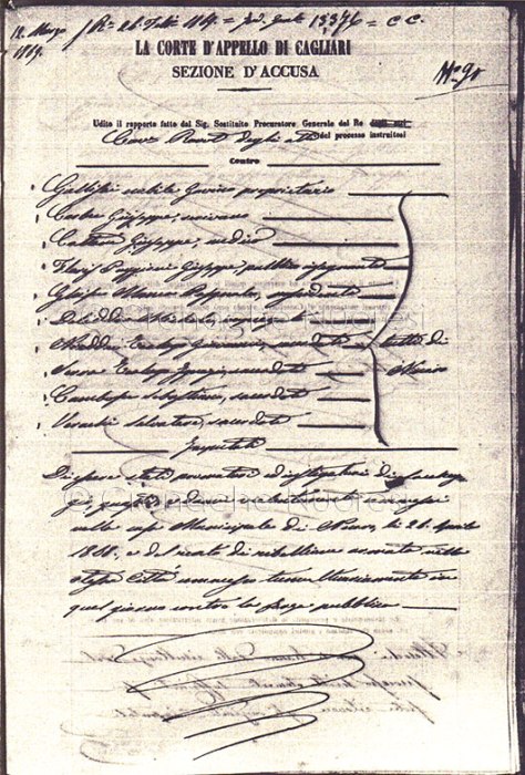 Corte d’Appello di Cagliari – Sezione d’Accusa, elenco degli imputati al processo per i moti “de Su Connottu” (1868)