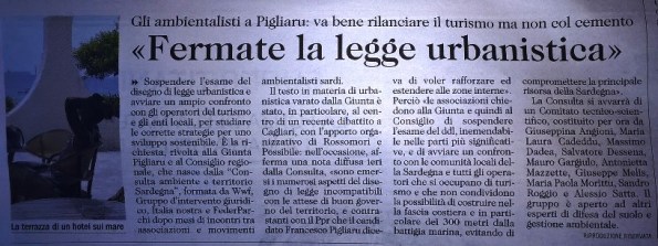 Nasce la Consulta sarda dell’ambiente. E alla Giunta: “Sospendere ddl urbanistica”: http://www.sardiniapost.it/politica/nasce-la-consulta-sarda-dellambiente-alla-giunta-sospendere-ddl-urbanistica/