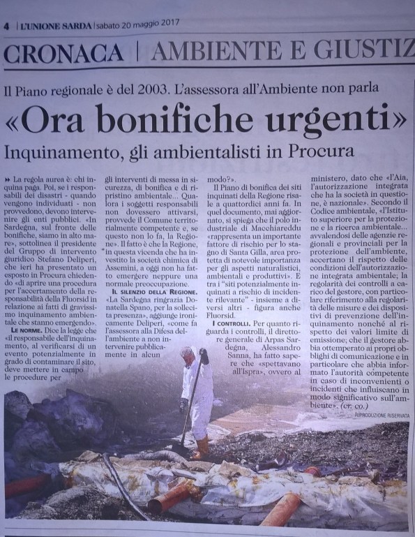 L’inchiesta per disastro ambientale nello stabilimento dell’area industriale di Assemini: http://lanuovasardegna.gelocal.it/cagliari/cronaca/2017/05/20/news/fluorsid-scarcerato-il-secondo-operaio-che-ha-parlato-con-i-giudici-1.15364974?ref=hfnscaec-4