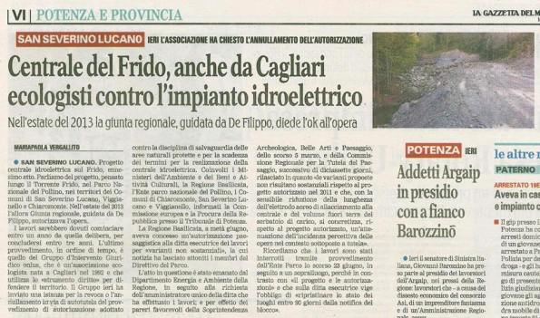 L’autorizzazione unica per la realizzazione ed esercizio di impianti di produzione energetica da fonte rinnovabile (deliberazione Giunta regionale Basilicata n. 835 del 9 luglio 2013), emanata dopo il superamento della procedura di valutazione di impatto ambientale (V.I.A.), prevede il mantenimento di un deflusso minimo vitale per il Torrente Frido di soli 150 litri al secondo, che ridurrebbe un tumultuoso torrente di montagna a uno stentato rigagnolo.