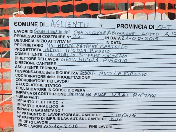 L’associazione ecologista Gruppo d’Intervento Giuridico onlus ha inoltrato (24 ottobre 2017) una specifica richiesta di informazioni ambientali e adozione degli opportuni provvedimenti riguardo un cantiere edilizio a pochi passi dal mare per la realizzazione di una villa sulla costa di Portobello di Gallura, in Comune di Aglientu (SS).