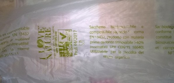 La legge italiana ha aggiunto un obbligo di utilizzo di sacchetti ultraleggeri (quelli dell’ortofrutta) che siano anche biodegradabili. Stabilisce infatti che dall’1 gennaio 2018 le borse di plastica devono essere “biodegradabili e compostabili e con un contenuto minimo di materia prima rinnovabile non inferiore al 40 per cento”, dall’1 gennaio 2020 “con un contenuto minimo di materia prima rinnovabile non inferiore al 50 per cento” e dall’1 gennaio 2021 “con un contenuto minimo di materia prima rinnovabile non inferiore al 60 per cento”.