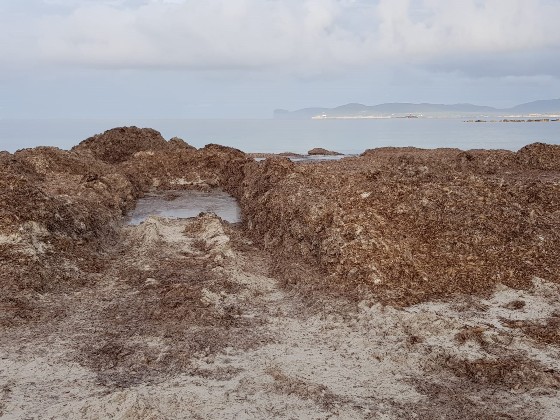 Cagliari, Poetto, accumulo di Posidonia e rifiuti