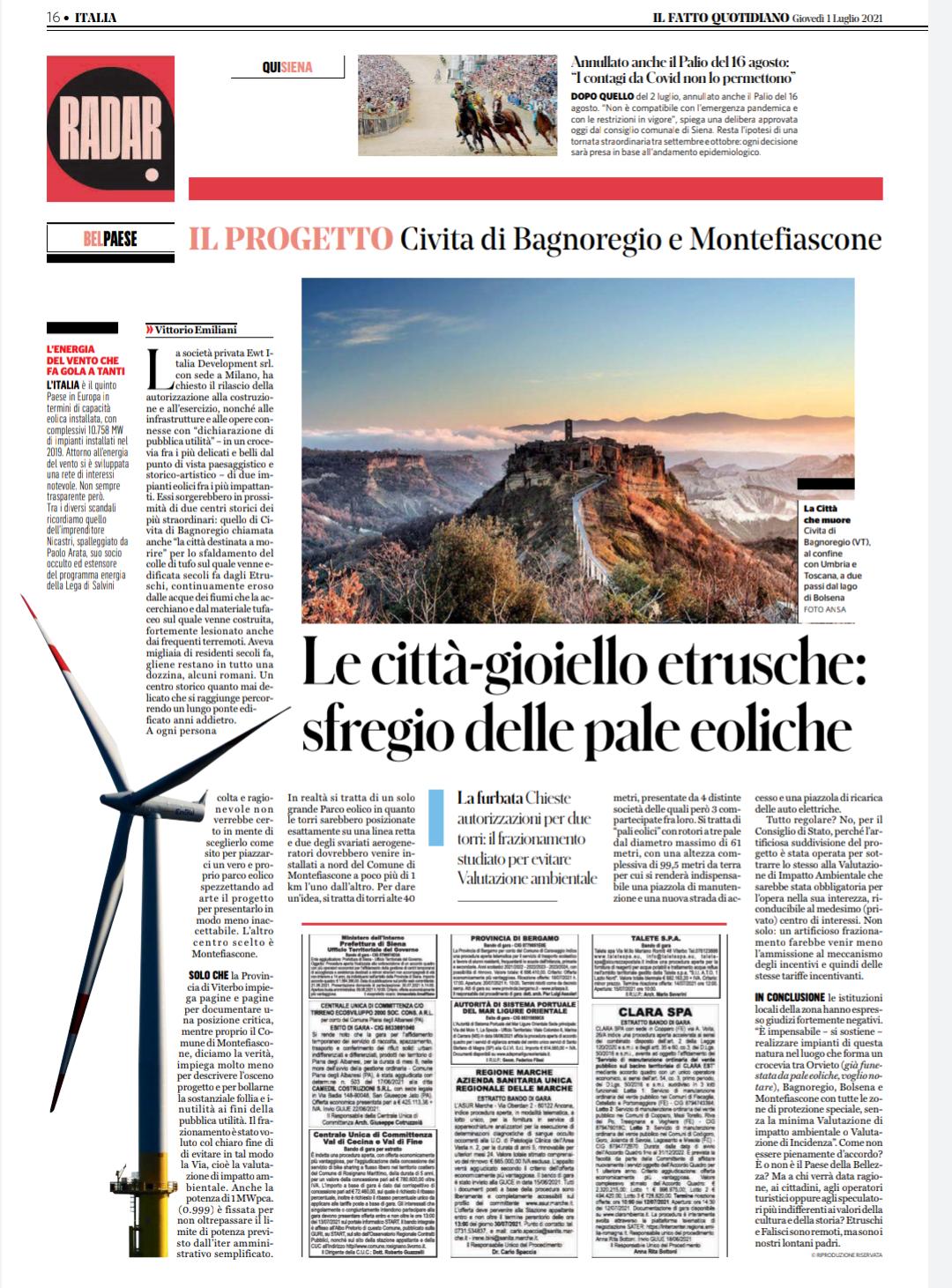 Sabato 3 luglio 2021, alle 17.30, presso il Parco Falcone e Borsellino del Belvedere di Civita di Bagnoregio (VT), si terrà il sit – in popolare #saveTUSCIA, per difendere un paesaggio storico unico e irripetibile aggredito dalla sempre più pressante speculazione energetica.