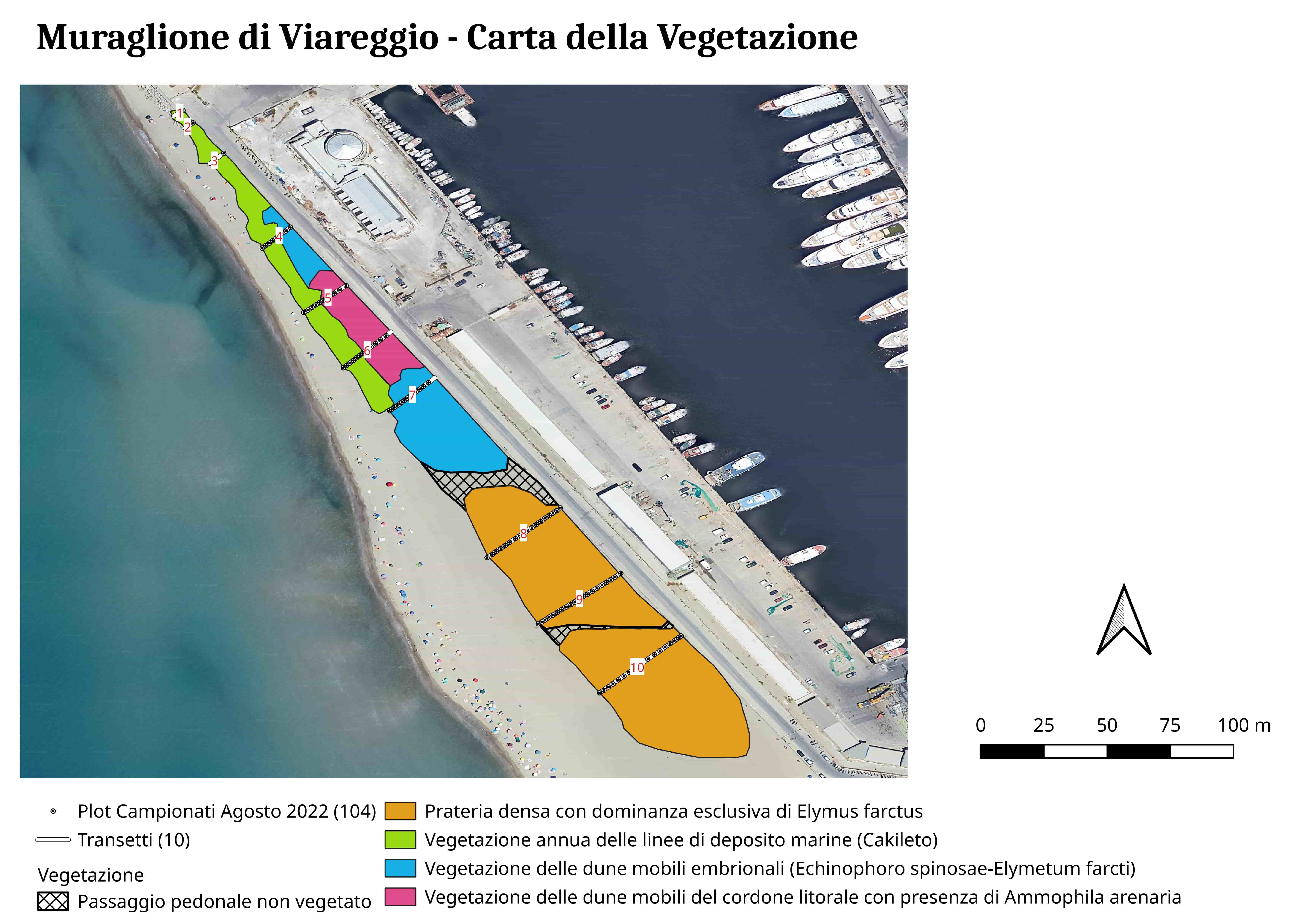realizzato nell’area del Muraglione di Viareggio, carta della vegetazione (2022)