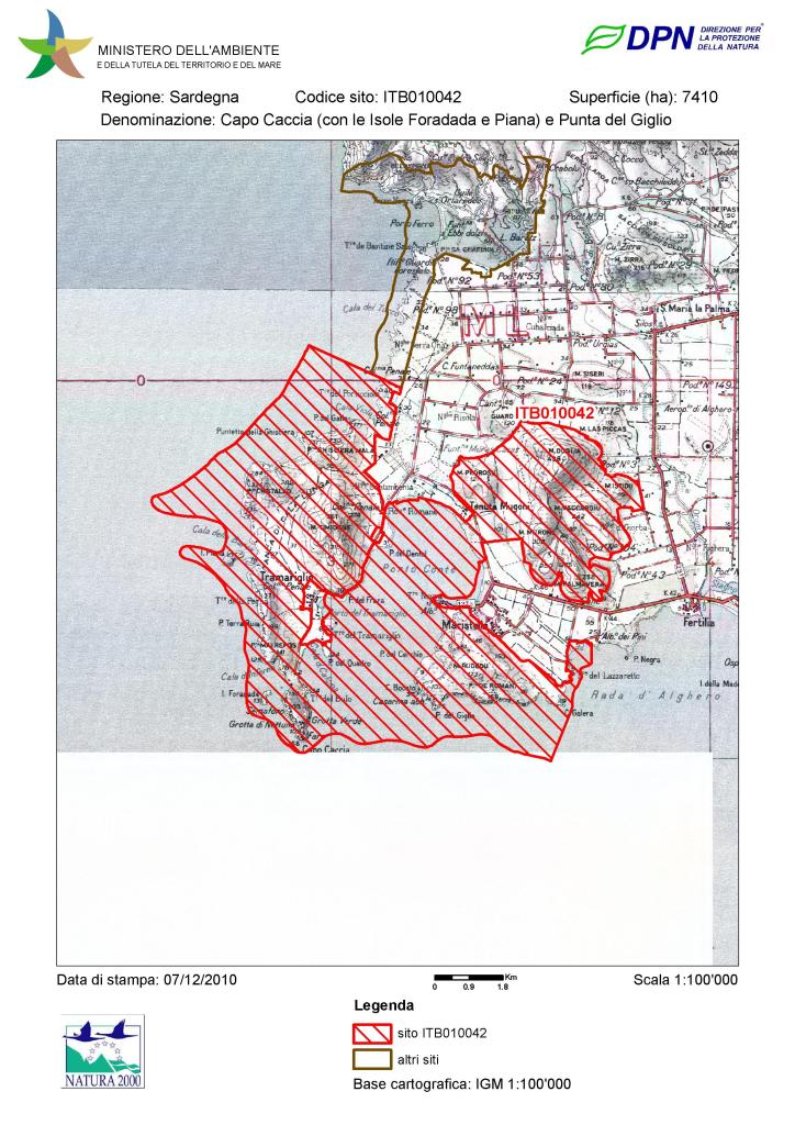 L’intera area costiera di Porto Conte, compresa Punta Giglio, rientra nell’omonimo parco naturale, è tutelata con vincolo paesaggistico (decreto legislativo n. 42/2004 e s.m.i.) e con vincolo di conservazione integrale (legge regionale n. 23/1993, piano paesaggistico regionale – P.P.R.), rientra, inoltre, inoltre, nella zona di protezione speciale –ZPSITB013044 e nel sito di importanza comunitaria – SIC “Capo Caccia (con le Isole Foradada e Piana) e Punta del Giglio” (codice ITB010042), ai sensi delle direttive n. 92/43/CEE sulla tutela degli habitat e n. 09/147/CE sulla salvaguardia dell’avifauna selvatica.